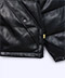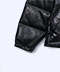 外層採用合成皮革材質,表面質感平整,視覺上偏向簡潔俐落,不易顯得厚重。內部填充羽絨,提供冬季所需的保暖度,同時維持外套的整體輪廓。短版設計使比例集中於上半身,搭配牛仔褲或寬褲時能平衡份量感,適合作為秋冬日常的主外套。