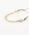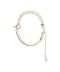 為手部增添華麗色彩的手環。採半環狀設計展現獨特造型感,一側為具曲線美的金屬環設計,展現摩登印象;另一側則結合鍊條與仿珍珠,打造優雅的雙鍊設計,演繹女性氛圍。釦具部分採用鍊條與玻璃珠寶組合的調節釦,隨手部動作展現的搖曳感營造出隨性氛圍。