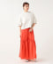於休閒感十足的內刷毛布料中,細膩揉合了奢華金屬光澤與多彩色點。特別採用能修飾上臂線條的澎澎袖剪裁,展現優雅精緻的細節重點。經由精密計算的下襬弧線,即使不紮入穿著也毫不顯得臃腫累贅,演繹出從容大氣的優雅輪廓。