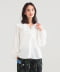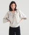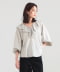 將袖口鬆緊帶向上拉起時,可呈現如泡泡袖般的立體輪廓。前方的細緞帶除了可繫成蝴蝶結,也可自然垂墜,為造型增添隨性感。