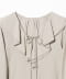 以份量感十足的荷葉領設計點綴臉部周圍,呈現華麗而吸睛的造型。在甜美之中帶有成熟氣質,打造不過於甜膩的女性風格,成為造型主角的一件單品。