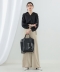 托特包的BLACK款式配色有白色和綠色,MOSS款式擁有不同色塊的設計令人注目。從版型到設計皆為〈Ray BEAMS〉的完全別注單品。使用了金屬配件,並於開合部位加入鉚釘裝飾增添了優雅感。附屬的背袋為可拆卸式,亦可作為肩背包使用。