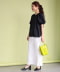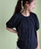 直紋透膚素材的份量上衣。打褶袖的設計營造出絕美的份量感並使用輕薄的布料,體現出自然的垂墜感與份量感。採用暗門襟的設計,僅露出第一顆紐扣作為點綴,使整體更為正式與高雅。