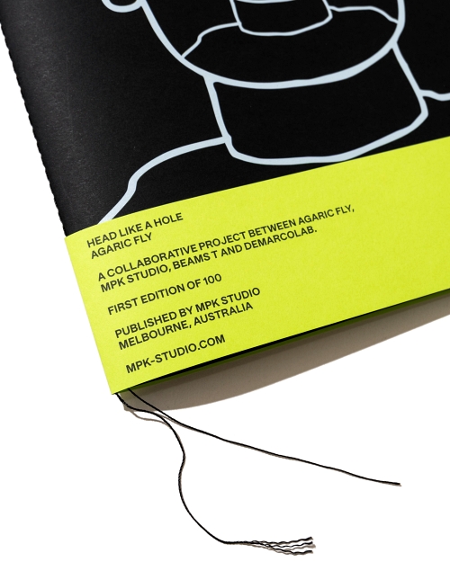 本系列以「HEAD LIKE A HOLE」為題,由 AGARIC FLY 的 Ed Davis 擔任圖像監修,並將其藝術創作轉化為 ZINE,由 MPK STUDIO
