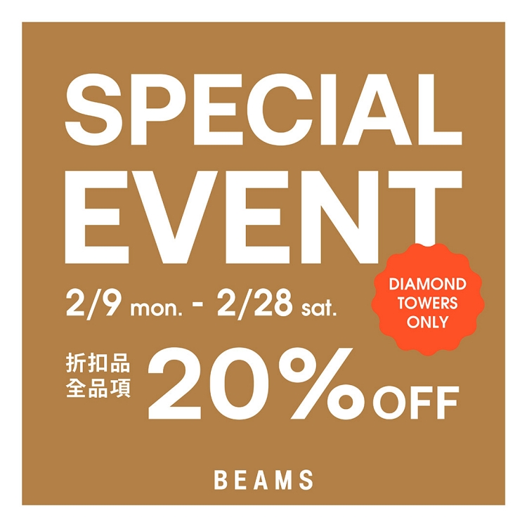 2月9日(一)至2月28日(六),BEAMS 新光三越DIAMOND TOWERS店將舉辦『SPECIAL EVENT』限定活動。